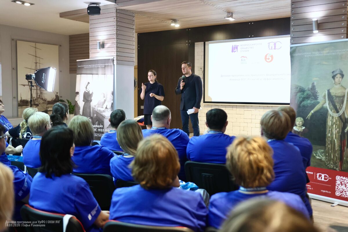 Они рассказали подробнее о мероприятиях в Уральском федеральном округе, приуроченных к 100-летнему юбилею ВОГ, об их значении для развития инклюзивного общества и популяризации русского жестового языка, а также о роли ВОГ в защите прав инвалидов по слуху.